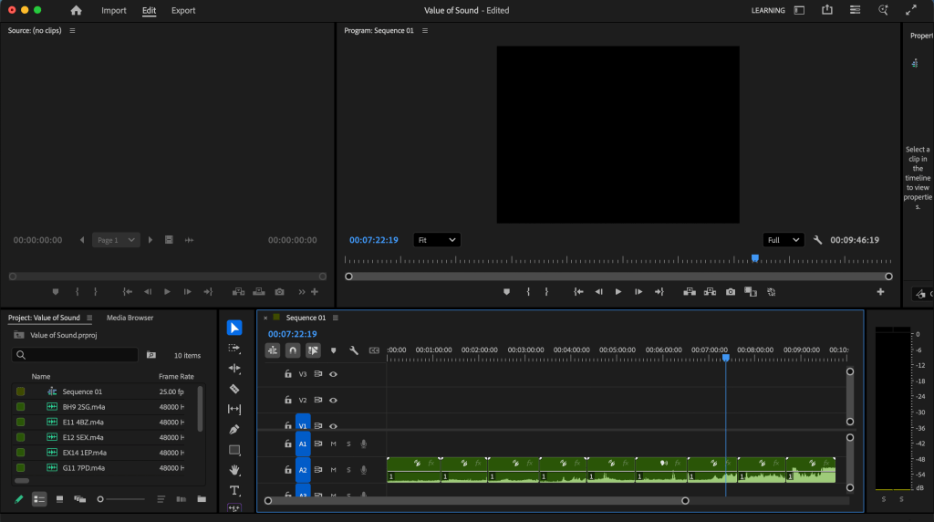 Despite looking into property prices, (buying and renting) for each of these postcodes, I was now much more interested in the different audio recordings I had received. I decided to create a value scale organising the recordings from quietest to loudest. To edit my sound-scale together, and so I was able to view the sound waves for each recording accurately I used Premier Pro.