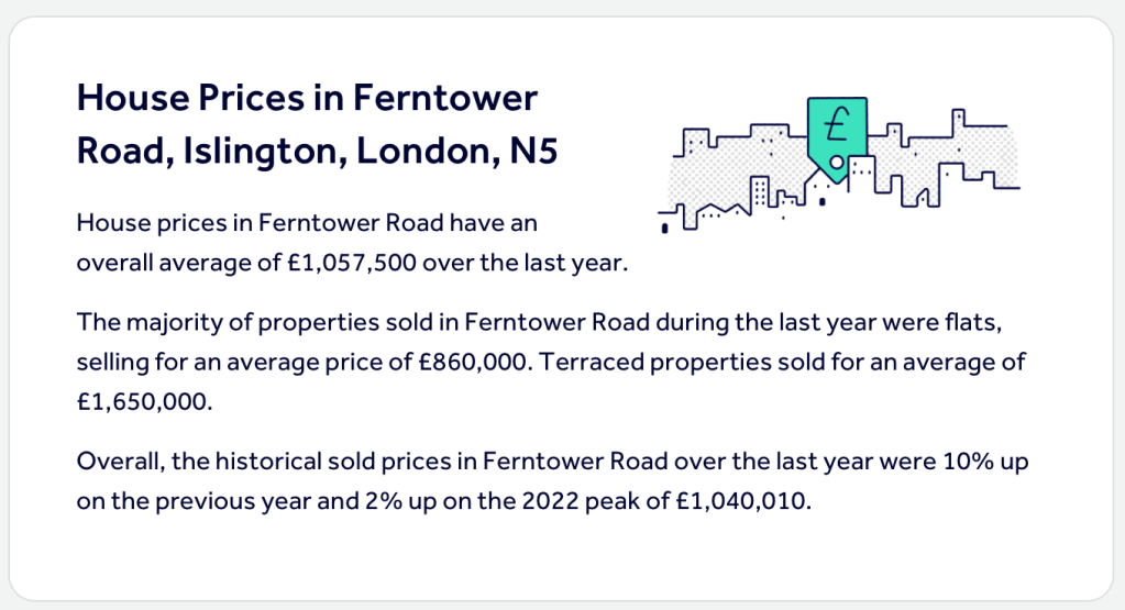 I considered the realistic price of this in the area I live in (private renting in Highbury, London), and conducted an online search to see how much the average price of a property with this postcode is currently to rent, and to buy.
