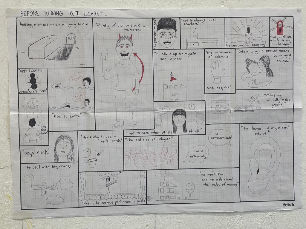 Due to the somewhat heavier subject of some lessons learnt, I may decide to adapt the ‘series’ I would create (if I had more time) to be more suited toward an older audience, perhaps over the age of sixteen. If I did not put an age-rating on this piece I may have to consider adapting the morals of each story instead. Without context, answers to my survey such as “I learnt the evil side of religion” could be problematic as I wouldn’t want to unfairly portray any religion, person, or culture, or place anyone under scrutiny for my work, as in this case my focus is not political. I therefore feel I have to be cautious when considering whose views I am presenting with each story.