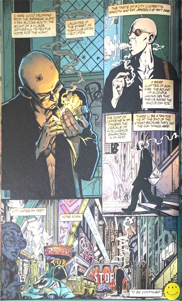 I grew up reading and looking at comics, and so I am familiar with a range of different graphic novel artists’ styles. My favourites range from highly detailed drawings from graphic novels such as ‘Transmetropolitan’, written by Warren Ellis and drawn by Darrick Robertson; to comic strips from early editions of The Beano – where the drawings are much more pared down, and less detailed. Typically, in my own approach to comic, or graphic novel, drawings I work simply; adding detail where it feels most necessary – a popular storytelling device often used in Manga comics to highlight things of significance.
